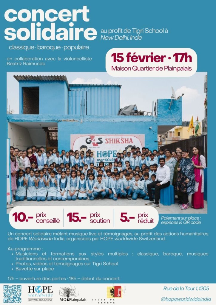 Un concert solidaire mêlant musique live et témoignages, au profit des actions humanitaires de HOPE Worldwide India, organisées par HOPE worldwide Switzerland.